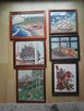 Zestaw 6 obrazków + jeden wyszyty do oprawienia wykonane -haft krzyżykowy oprawnione w drewniane ramki ,ze szkłem i ...